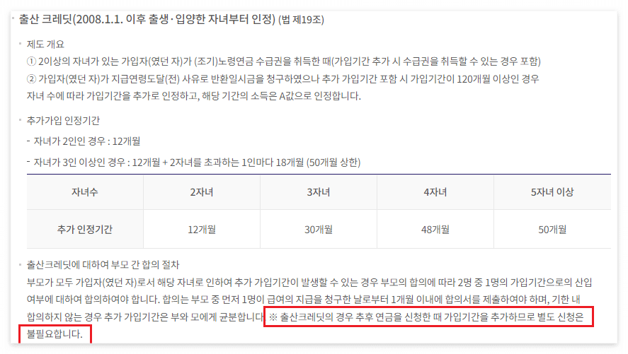저출산 고령화에 따른 복지서비스로 둘째 이상 자녀를 출산한 국민연금 가입자에게 자녀의 수에 따라 국민연금 가입기간을 추가해 주는 제도인데요. 국민연금 출산크레딧 서비스 내용에 대해 알아보겠습니다.